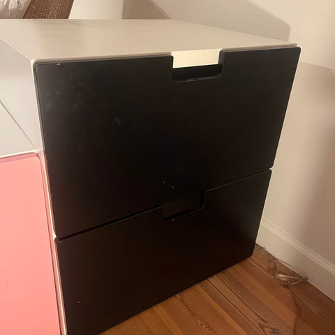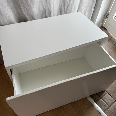 Børnemøbel, som både kan fungere som et lille bord og som opbevaringsmøbel.