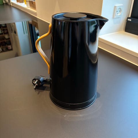 Stelton EM77 elkedel i sort med træhåndtag. 1,2 l. Små ridser uden på, som kan ses på billederne.