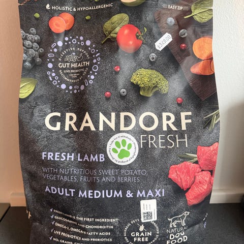 Posen er uåbnet og kan holde sig til 13/3 2027. Hundefoderet er købt til 215 kr. og sælges til 119 kr.