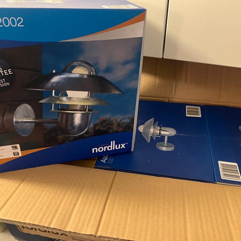 Ubrugt udendørslampe i rustfrit stål.