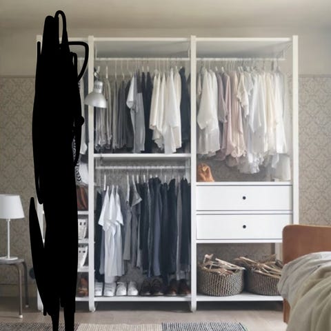 Ikea ELVARLI garderobesystem med stort gulvspejl.