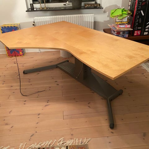 Velholdt højrehjørne skrivebord med hævesænke stel. Mærke Kinnarps.