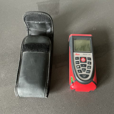 Bosch DLE 60 laserafstandsmåler med digital skærm og flere funktioner til præcis afstandsmåling. Enheden har en kompakt størrelse og er designet til brug i forskellige måleopgaver inden for byggeri og indretning.