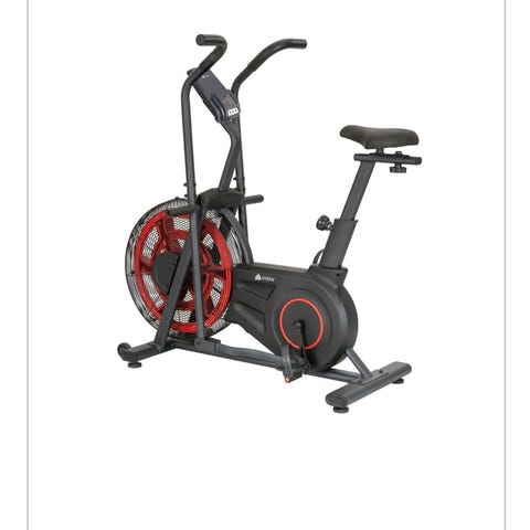 Taurus Airbike kondicykel i sort farve med justerbart sæde og digitalt display. Designet til indendørs træning med luftmodstandssystem og håndtag til både arme og ben. God glidende bevægelse.