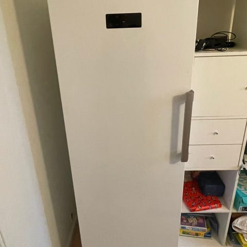 Beko TG1114Y skabsfryser med flere gennemsigtige skuffer til opbevaring af frosne varer. Fryseren er hvid og designet til opbevaring af madvarer ved lave temperaturer.