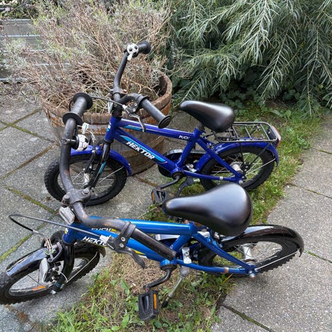 Super fin cykel fra tørt kælderrum som er blevet for lille. Er i god stand den skal bare spændes efter. Passer til 3-5 år. Medfølgende hjelm er 50-55cm med ventilation og justerbar strop.
