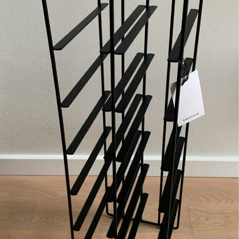 Vinreol i rustfri stål med plads til 8 flasker vin.