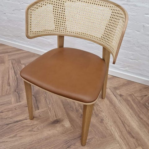 Stolene er betrukket med kerne læder i en smuk cognacfarve, de har en fed patina.