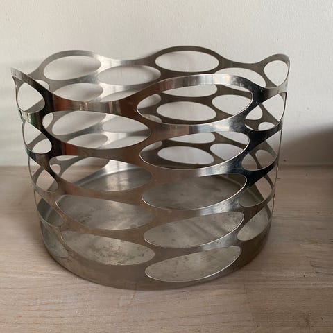 Stelton Explore frugtskål i metal med et unikt hulmønster. Skålen er designet til opbevaring og præsentation af frugt. Materialet er holdbart metal, og designet passer til moderne køkkener.