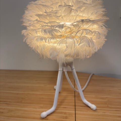 Tripod-foden er 36 cm høj. Samlet højde med skærm er 55 cm og 32 cm i diameter.