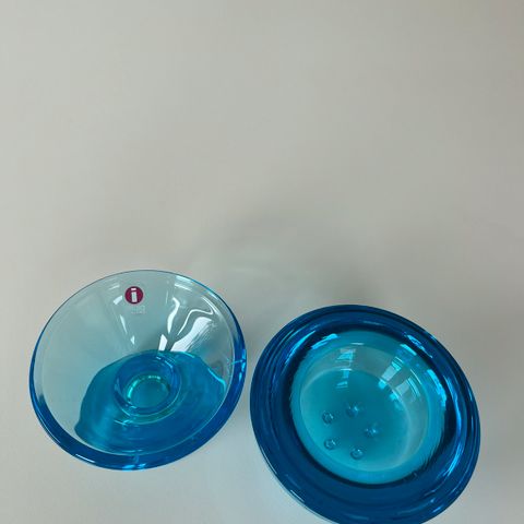 Iittala Tähti (stjerne) fyrfadsstage i turkis. Som ny. Finsk glas.