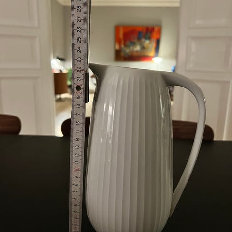 Kähler vase med blå og sorte striber. Fremstillet i keramik med en glaseret overflade. Velegnet til dekoration og opbevaring af blomster.