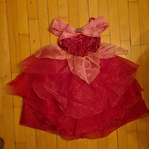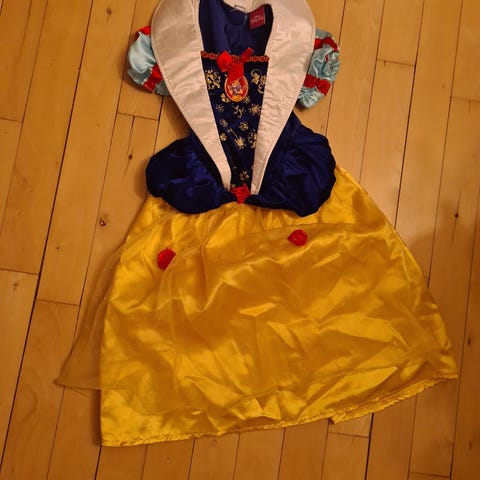 Disney Tinkerbell kjole til pige i størrelse 104. Kjolen er grøn og lavet af 100% polyester. Den har detaljer som tyl og glimmer, og inkluderer vinger som en del af designet.