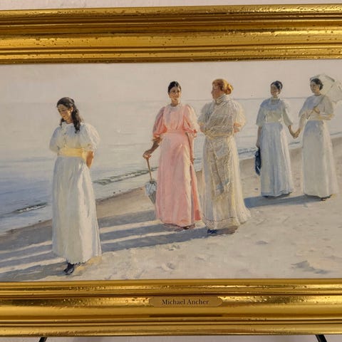 Indrammet lamineret maleri med portræt af Michael, Anna og datteren Helga.