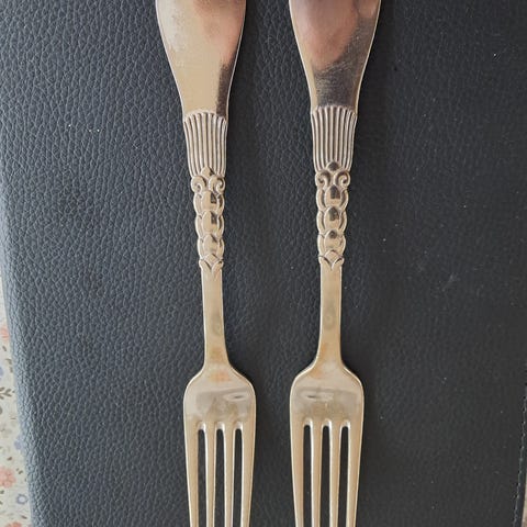 4 flotte ens udsmykket dessert/-eller anden gaffel