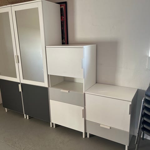 Sættet består af både skabe og hylder, så du kan bygge et funktionelt og dekorativt vægsystem i stuen, kontoret, entreen eller værelset.