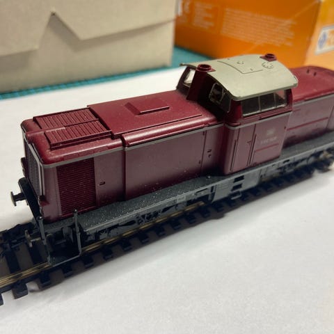 Roco DCC digital model af Diesellokomotiv model V100 i rød farve. Modellen er detaljeret og der er mange løsdele til montering . Test kørt og kører fint, vil anbefale smøring af tandhjul m.v. Efter en del år på hylden. Leveres i original emballage.