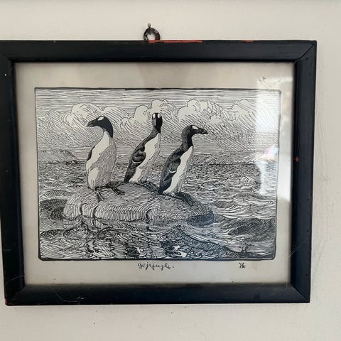 Sidste billede er også træsnit endda farvelagt med to fine solsorte ...men jeg kan ikke læse kunstner signatur. kr 800