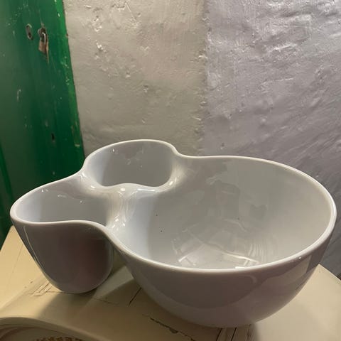Muuto gul keramisk skål med unikt design. Skålen har flere rum og er velegnet til servering eller opbevaring af småting.
