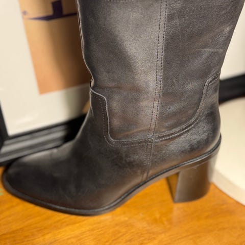 Zara støvler i størrelse 41 med sort farve. Støvlerne har en kombination af læder og strikket materiale samt en lynlås foran. Sålerne har et mønster for bedre greb.
