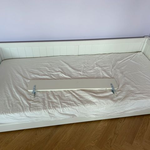 IKEA seng i hvid med tilhørende madras og sengehest. Sengen er af navnet Kritter.