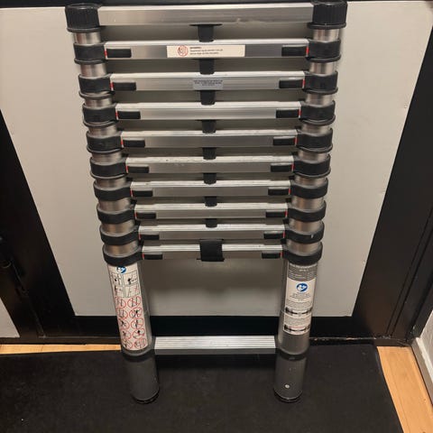 Tagrygstige i aluminium med bøjle og hjul, 520 cm lang