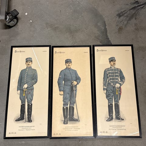 3 Stk indrammede plakater fra serien Danske Uniformer - HÆREN. ,Afhentes i:,Røde Kors Egå (751),Bemærk at mail, chat og beskeder ikke besvares, og varen skal købes på knappen "Gå til varen"