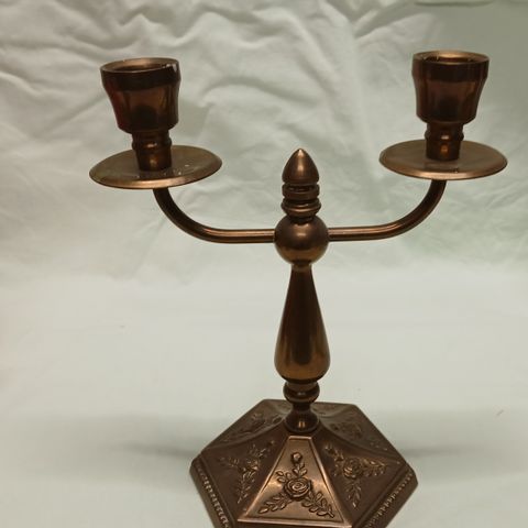 Produktet er en ornamenteret lysestage med bølgende former. Det fremstår glat og skinnende. Fra skultura og i messing,Afhentes i:,Røde Kors Aabenraa (546),Bemærk at mail, chat og beskeder ikke besvares, og varen skal købes på knappen "Gå til varen"