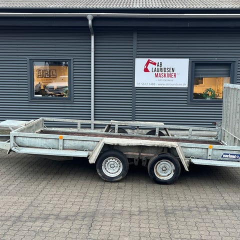 Fin 3500kg maskintrailer med 4meter lad. fin stærk trailer der køre på bladfjeder. standart led lys, Alubund, fuldbredde læsserampe, aluskærme og trin på siden.