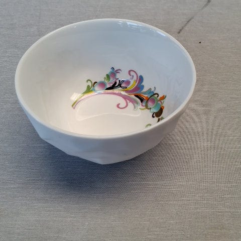 Skålen er rund med en glat overflade og en mørk kant Den er lavet af porcelæn ,Afhentes i:,Røde Kors Horsens (615),Bemærk at mail, chat og beskeder ikke besvares, og varen skal købes på knappen "Gå til varen"