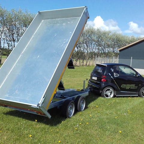 Helt ny vippelads trailer med el hydraulik til vip. elspil. trådløs fjernbetjening til styring af spil og vip.