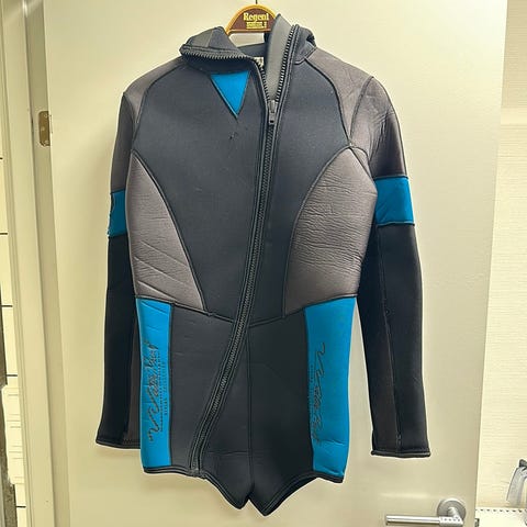 Vest til svømning med insektmotiv, lynlås foran. Lavet af vandafvisende materiale.
