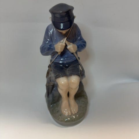 Figuren viser en dreng i blå overalls, der holder en kurv. Den er lavet af keramik.,Afhentes i:,Røde Kors Kolding (621),Bemærk at mail, chat og beskeder ikke besvares, og varen skal købes på knappen "Gå til varen"
