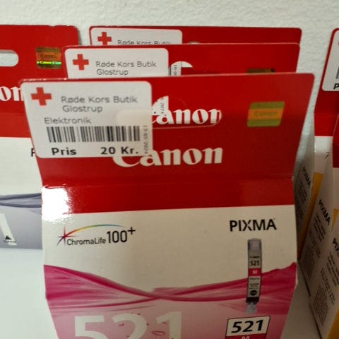 Produktet er en blækpatron i en farverig emballage. Den er designet til Canon PIXMA-printere og indeholder gul blæk. Emballagen er præget af logoer og informationer om produktet.,Afhentes i:,Røde Kors Glostrup (161),Bemærk at mail, chat og beskeder ikke besvares, og varen skal købes på knappen "Gå til varen"