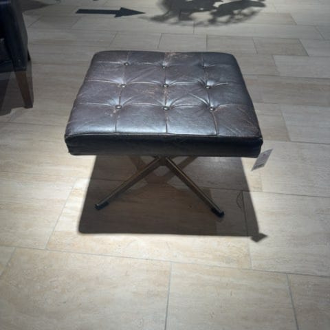Puden har et kvadratisk design med en pelslignende overflade samt metalben. Den har en blanding af brune og hvide nuancer.,Afhentes i:,Røde Kors Kolding (621),Bemærk at mail, chat og beskeder ikke besvares, og varen skal købes på knappen "Gå til varen"