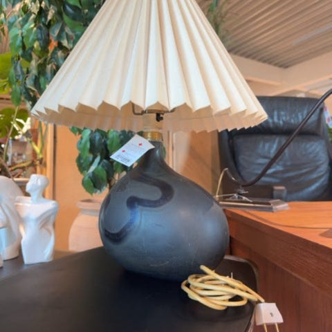 Lampen har en elegant, plisseret skærm og en metalbasis med detaljer.,Afhentes i:,Røde Kors Kolding (621),Bemærk at mail, chat og beskeder ikke besvares, og varen skal købes på knappen "Gå til varen"