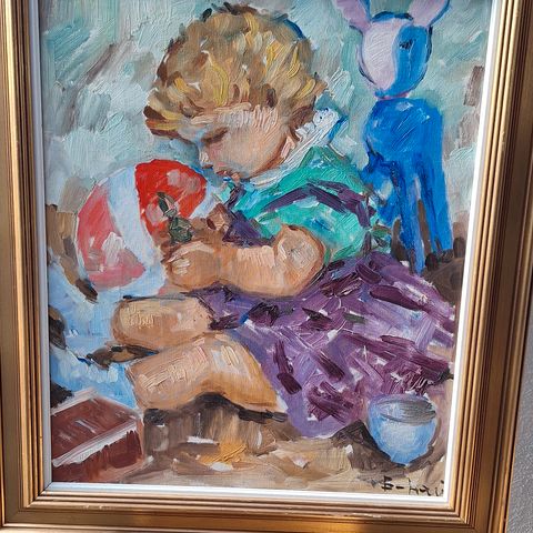 Billedet viser en figurativ komposition med bløde penselstræk og farverigt udtryk.