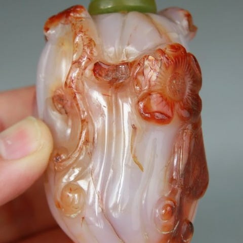 SJÆLDEN EKSKLUSIV Kinesisk snusflaske i skåret kvarts fra Qing-dynastiet, 1800-tallet