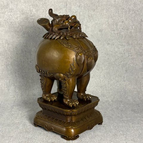 Bronzekoro røgelsesbrænder i form af en høk, der står på en klippe, med et egern for neden, Japan, anden halvdel af 1800-tallets Meiji-periode; højde 42 cm, bredde 25 cm, dybde 20 cm, vægt 9,3 kg, i fremragende stand med restaurering ved venstre legs indsats og medfølgende certifikat for ægthed. Klik på den blå "gå til varen" knap, for at købe eller byde på denne vare. Den samlede pris vil blive vist inden du afgiver dit bud.