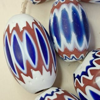Perle rosetta eller chevron har dimensioner, der spænder fra 6x8 mm til 7x9 mm, og fremstilles af en hult rør bestående af seks lag af glas, skåret i cylindriske strimler, som er blevet slibet til perler med en oliven- eller rund form. Den mest berømte glasperle lavet i Murano Venezia i verden.