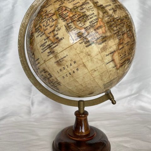 Mappamondo pirtaliquori i træ fra tidligt 1900-tal. Mappamondo bar, mål: højde 1 meter, diameter ca. 50 cm. Sjældent og svært tilgængeligt møbel.