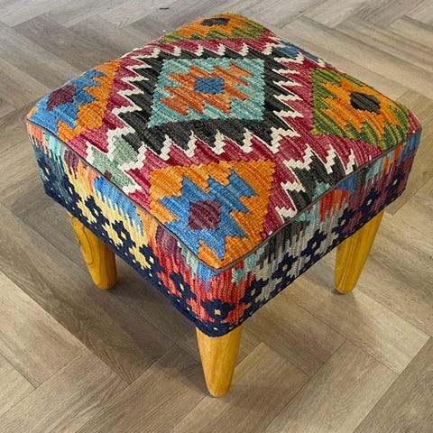 Kelim poef - håndvævet kelim - ny - ubrugt - uld - farverig kelim - ny - ubru...