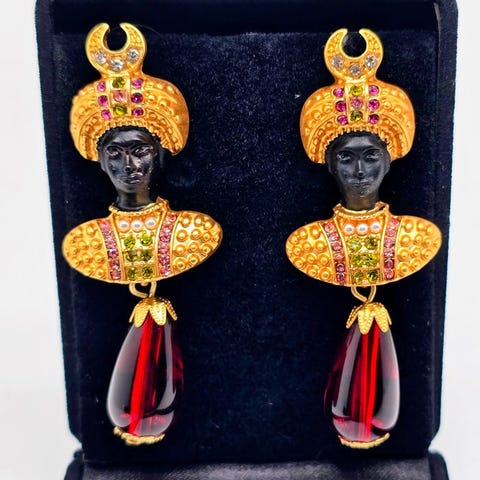 Guldbelagte clip-on øreringe i Blackamoor med dekoration af multikristaller.