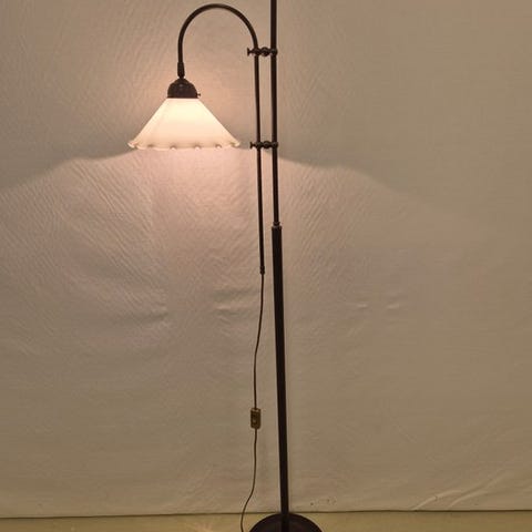 Historistische Stehlampe – Geschweifter Fransenschirm – Metallguss, elektrisc...