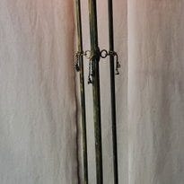 Historistisk guldbrun patineret metallampe med svungen, tredelt fod i boligmetal, elektrisk, 2-arms fatning, H 160 cm x B 60 cm x D 60 cm, oprindelse Europa, 1960'erne, i god brugt stand med lettere patina. Klik på den blå "gå til varen" knap, for at købe eller byde på denne vare. Den samlede pris vil blive vist inden du afgiver dit bud.