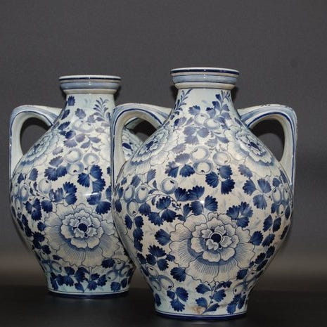 Elegant vase fra Villeroy & Boch Mettlach, udført i det populære dekor 'Phönix', et klassisk inspireret blomster- og fuglemotiv, der er udført i fin underglasur-trykteknik. De harmoniske farver, de præcise linjer og den afbalancerede form understreger den høje kvalitet af Mettlacher keramikkunst fra denne tid.