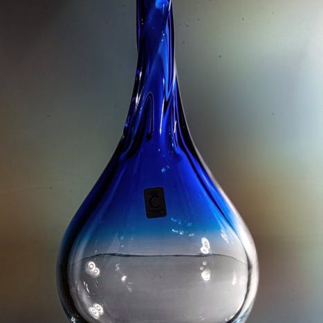 Skulpturelt vaseensemble fra serien 'Archais' af Hutschenreuther, designet af Heinrich Fuchs. Dette ikoniske design står som et eksempel på den eksperimentelle ånd i det tyske mid-century design fra 1960'erne. Den markante, arkaiske formudtryk med dybt facetslebne, geometriske strukturer skaber et imponerende spil af lys og skygge og giver vaserne en næsten arkitektonisk tilstedeværelse.
