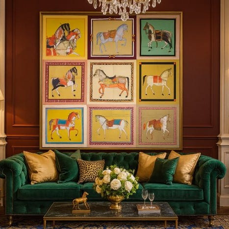 Artmaison eksklusiv, lavet i Italien, sjældent jacquard-tapet i grøn kashmir og bomuld med en hjort og en unge i skoven, måler 185 × 140 cm, i ny stand. Klik på den blå "gå til varen" knap, for at købe eller byde på denne vare. Den samlede pris vil blive vist inden du afgiver dit bud.