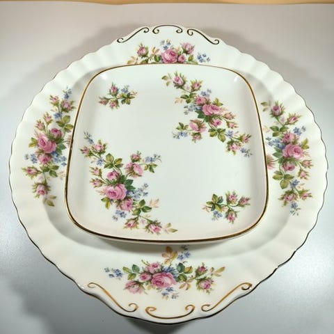 Royal Albert - Serveringsfad (8) - Knogle - Moss Rose (ca. 1956)
