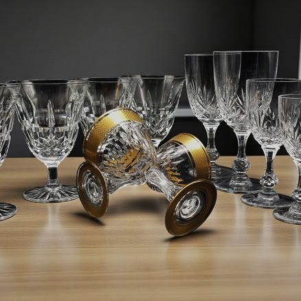 Sæt med 7 smukke krystalglas til vodka — fremstillet i Daum France. Designet i en elegant form, viser hvert stykke raffinerede linjer, funklende klarhed og tidløs elegance.